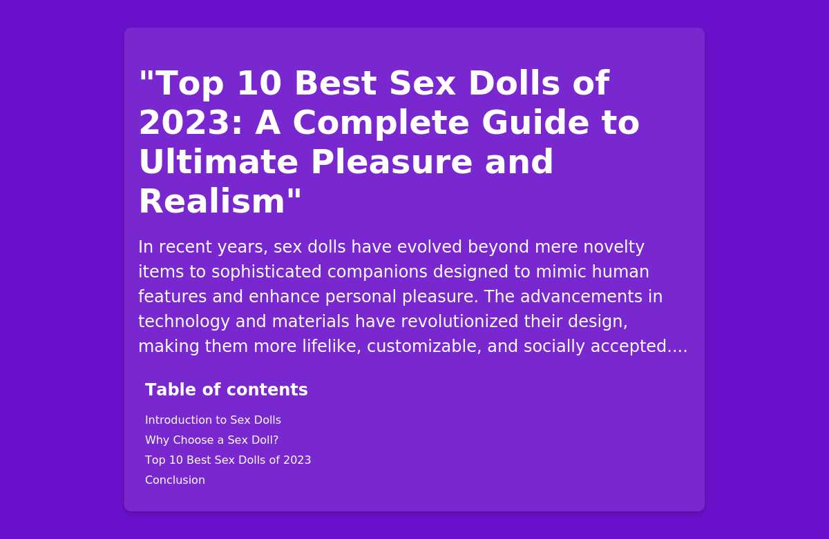 In this guide, we will explore the top 10 sex dolls of 2023. We will delve into their unique features, advantages, and even cost considerations, helping you make an informed choice for your ultimate pleasure and realism.